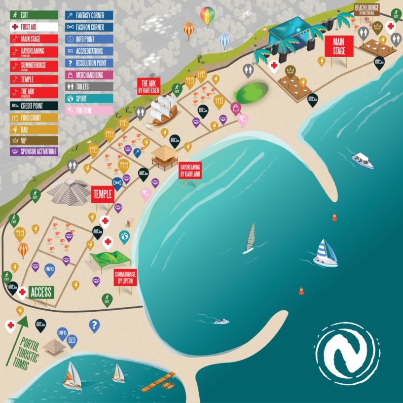 Vor fi 7 scene la Neversea şi, uitându-ne pe hartă, suntem foarte curioşi cum vor arăta Temple, The Ark şi scena principală (care, by the way, are 16 metri înălțime și :-) Va fi chiar şi o scenă amplasată pe apă! Începând de vineri, ora 12:00, şi până luni dimineaţă, la ora 7:00, vor fi concerte non-stop pe plajă. Iar pe lângă concerte, ne aşteaptă numeroase food truck-uri, baruri şi multe activări de la sponsori. Poate chiar şi câteva băi în mare.