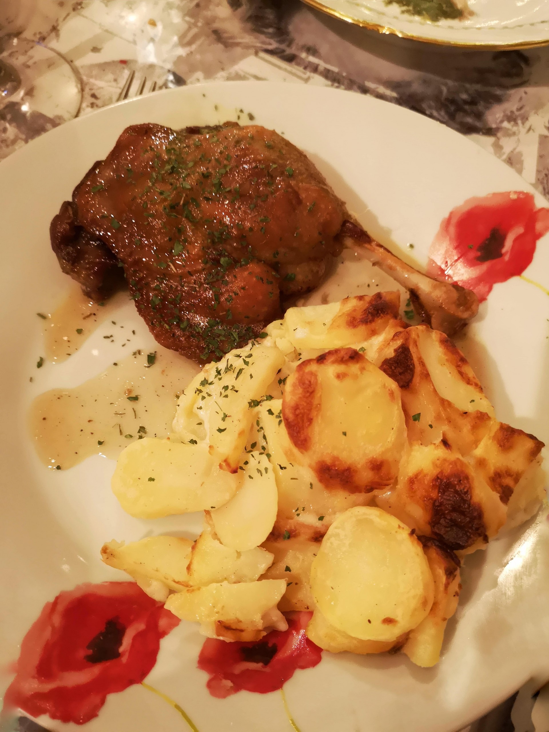 În 2019 am ajuns pentru prima oară în Franța și nu aveam cum să plecăm de acolo fără să încercăm confit-ul de rață. Am petrecut trei nopți în Nisa și am luat de două ori cina la Chez Moi, un restaurant simpatic din apropierea hotelului nostru, unde am comandat de fiecare dată pulpă de rață confiată și cartofi gratinați. Ca în cazul oricărui confit care se respectă, carnea era foarte fragedă și se desprindea cu ușurință de pe os. Dar ce a propulsat cu adevărat acest loc în topul experiențelor culinare din acest an a fost atitudinea patronului, care ne-a încântat cu atitudinea lui pozitivă și care ne-a servit cu un Chardonnay bun și câteva tarte din partea casei. Dacă sunteți prin Nisa, neapărat să mâncați aici.