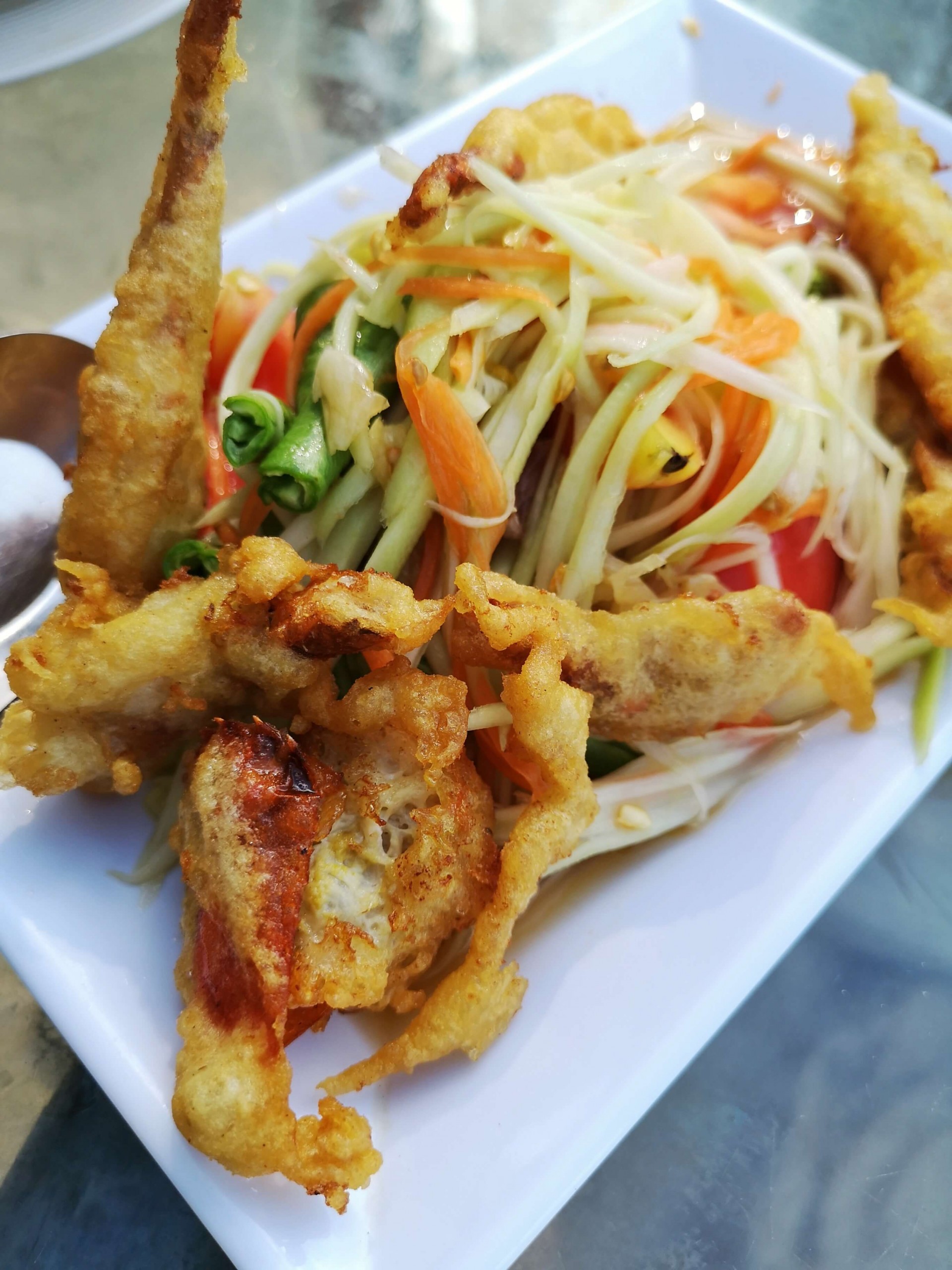 Ce-ți poți dori mai mult decât să stai cu picioarele în nisip și să mănânci fructe de mare proaspete? Dacă nu înțelegi ce spunem, îți recomandăm să ajungi la Haad Bang Po, un restaurant mic din Koh Samui, atât de îndepărtat de ochii turiștilor încât e foarte probabil să ai o porțiune de plajă doar pentru tine. Aici am mâncat pentru prima oară salată de papaya și ne-am îndrăgostit pe loc de ea. Am mai mâncat ”soft shell crab” (crab cu carapace moale, tras în tempura), creveți ”tiger” și o supă clară cu legume și mulți creveți. Și tot aici am băut pentru prima oară o bere Chang, rece ca gheața, în timp ce ne bucuram de priveliște. Poți citi mai multe aici.