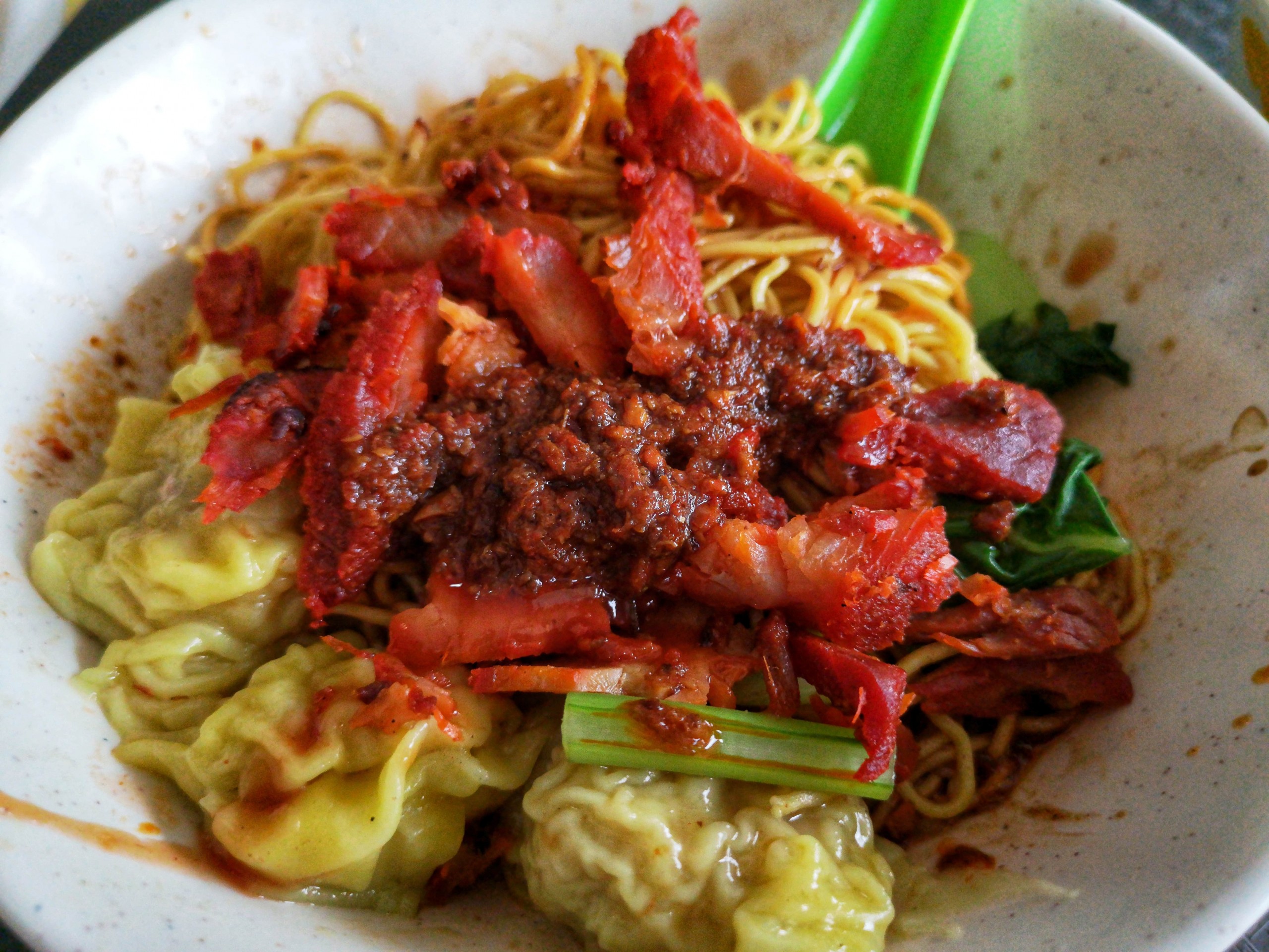 Putem spune că mâncarea singaporeză este ea în sine un fusion. Este și cazul tăiețeilor cu wonton de la Hua Kee Hougang, un stand care servește aceleași preparate de mai bine de 70 de ani. Aici, tăiețeii cu ou vin în același bol cu wanton (găluște chinezești), char siew (porc caramelizat), șuncă de porc, sambal (sos de ardei iute), șuncă și ceapă prăjită. Toată această combinație de texturi este însoțită de un bol mai mic cu o supă clară și fierbinte.