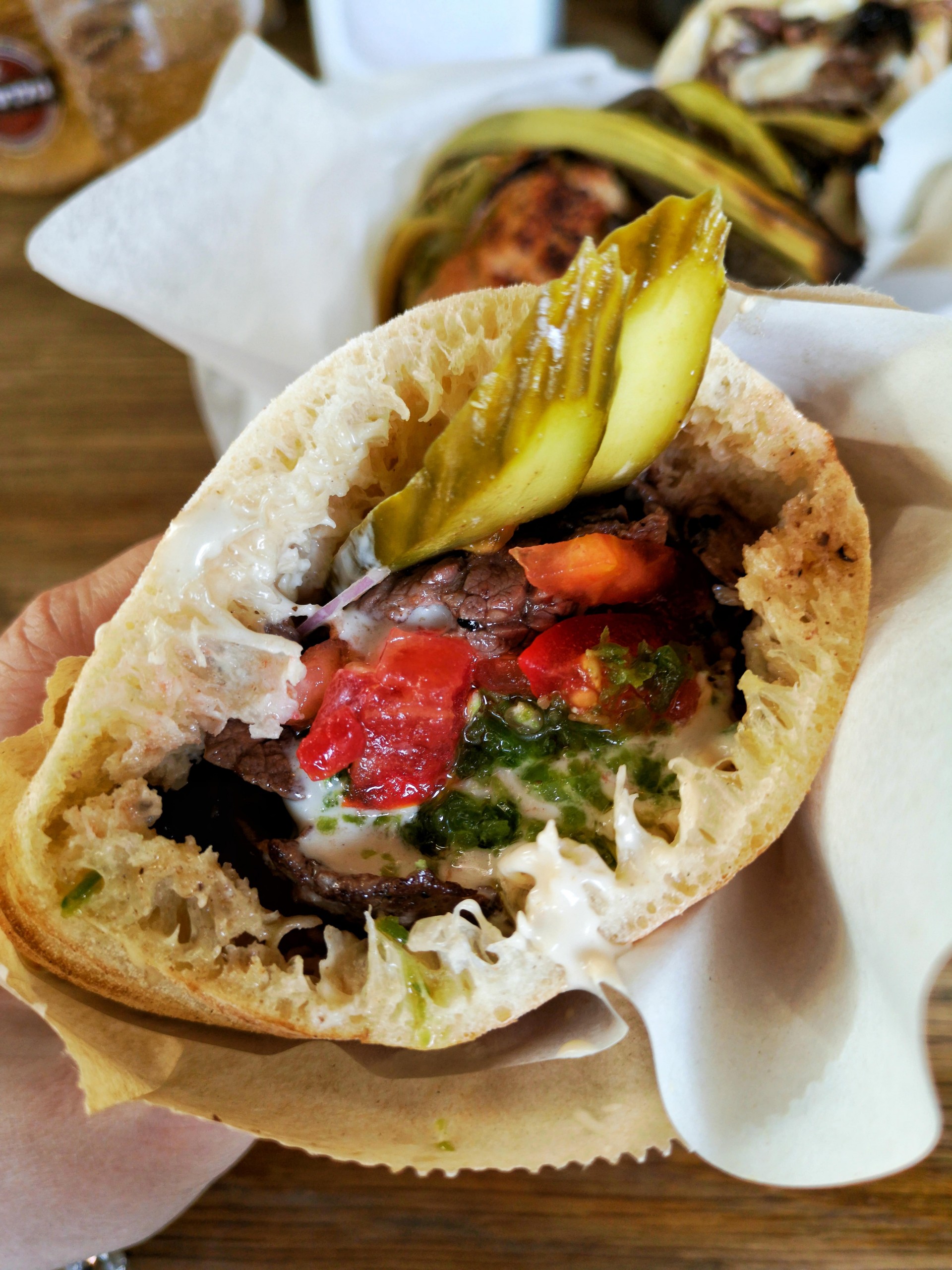 Să mănânci sâmbata în Tel Aviv poate fi o adevărată provocare deoarece isralienii sărbătoresc Shabbat-ul, iar multe restaurante sunt închise. Din fericire, nu și Miznon, un lanț de restaurante în care se servesc tot felul de specialități în pită. Noi am fost la cel de pe King George. Miznon este un loc cu bucătărie deschisă, din care răsună muzică de toate felurile. Sandvișurile de aici sunt adevărate opere de artă și au denumiri pe măsură. Recomandăm „Intimate” – cu tocană de vită și rădăcinoase și ”Deep Satisfaction” – cu vită slow cooked și mozarella din belșug. Dar nici o vizită la Miznon nu ar fi completă fără conopida coaptă, stropită cu ulei de măsline și sare Maldon din belșug, care joacă rol de garnitură perfectă.