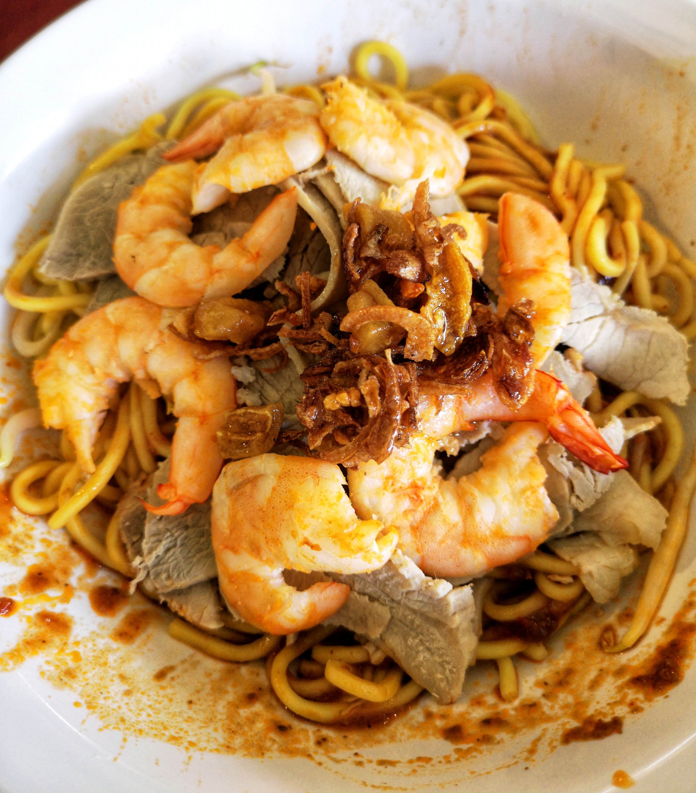 Un alt preparat specific în Singapore și Malaezia este prawn mee, tăieței cu creveți. Noi i-am încercat în Tekka Center, un hawker center recunoscut mai degrabă pentru standurile cu mâncare indiană. Locul se numește 545 Whampoa Prawn Noodles și am aflat de el tot dintr-un episod realizat de Anthony Bourdain. Specialitatea casei, pe care am încercat-o și noi, este un bol cu tăieței galbeni, creveți, felii subțiri de porc, bucăți mici de șuncă și ceapă prăjită. Totul este bine asezonat cu sambal, sos indonezian de ardei iute, de începi să transpiri chiar după prima îmbucătură.